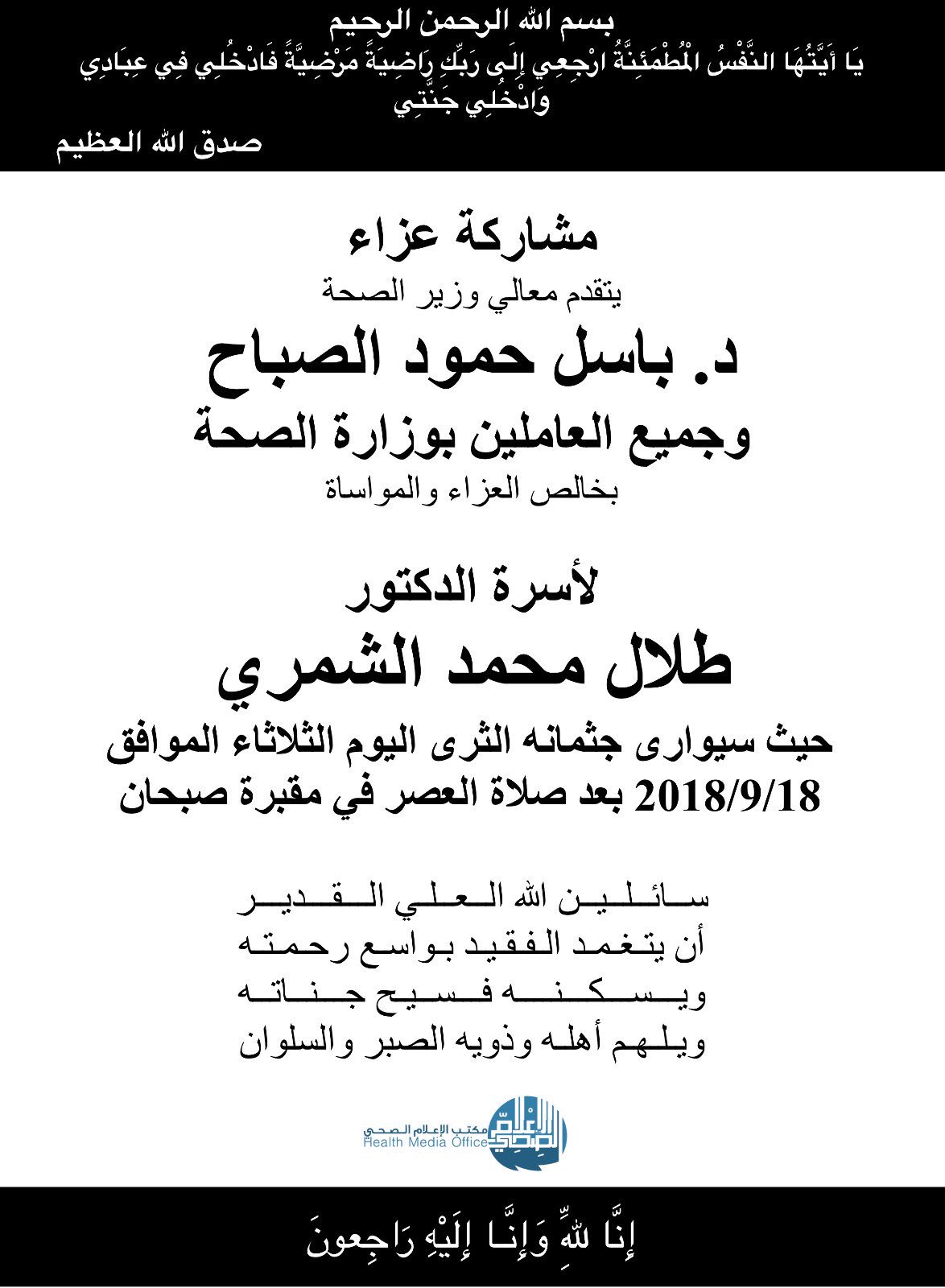 وزارة الصحة الكويت On Twitter إنا لله وإنا إليه راجعون في ذمة الله الدكتور طلال محمد الشمري