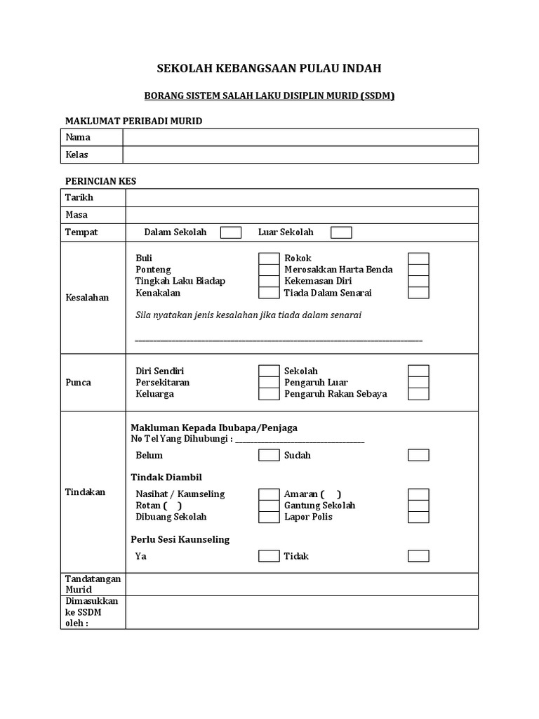 Borang Salahlaku Dan Disiplin Sktp2016