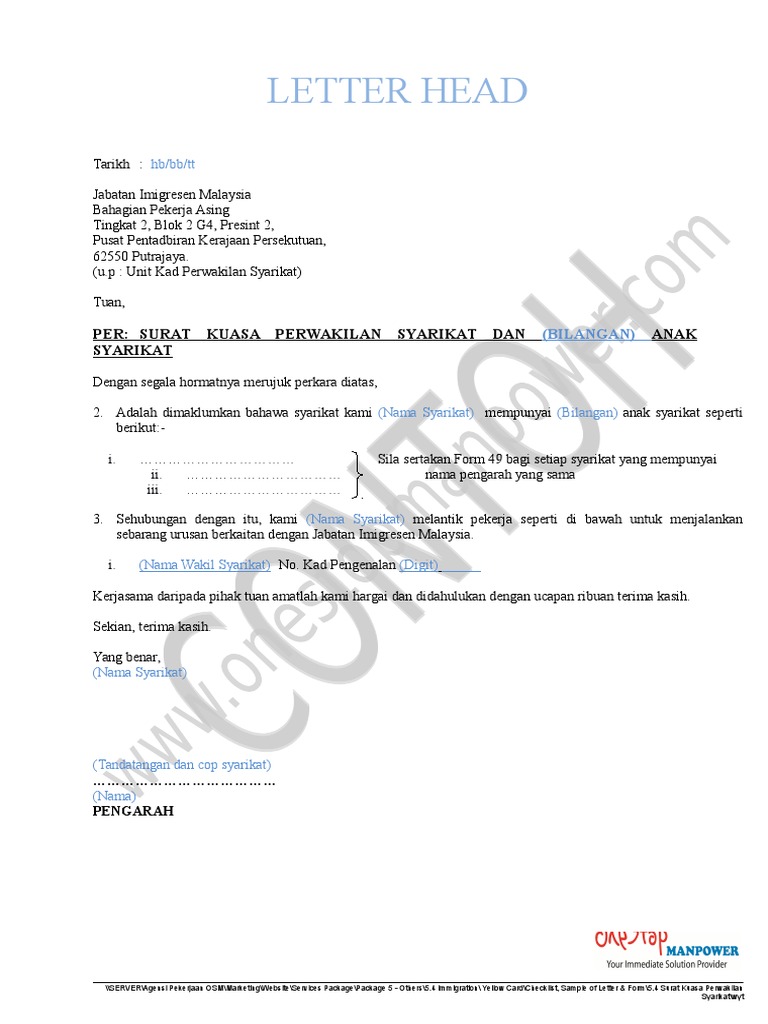 Memohon Jsurat Kuasa Daripuia Syarikat Mengenai Kebenaran Wakil Syarikat Berurusan Dengan Jabatan Malaysia Pdf Document