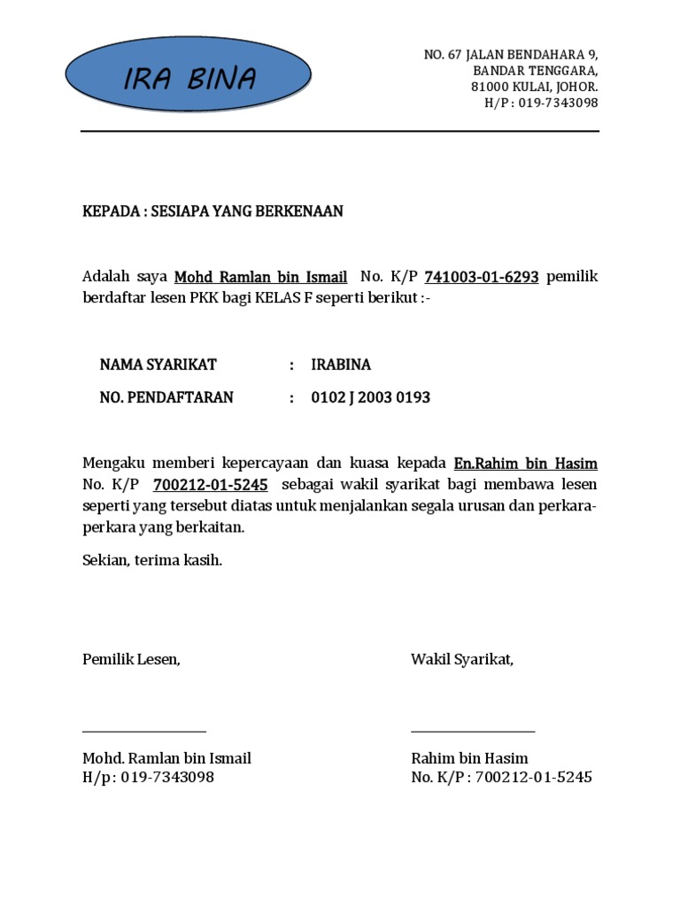 Contoh Surat Wakil Jpj 34wm1r2vd8l7