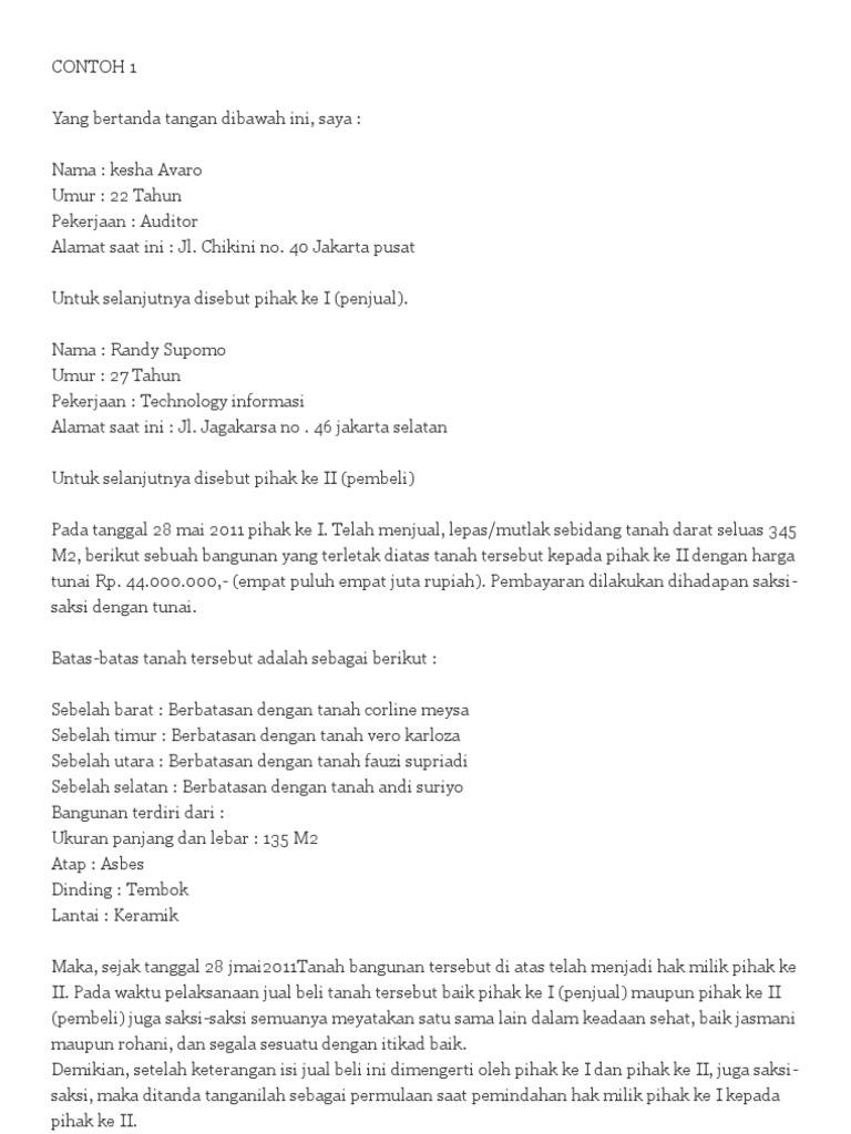 Contoh Surat Jual Beli Rumah Dan Informasi Yang Harus Dicatat