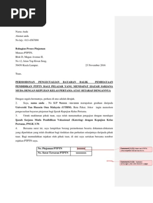 Contoh Surat Permohonan Pengecualian Ptptn 2016