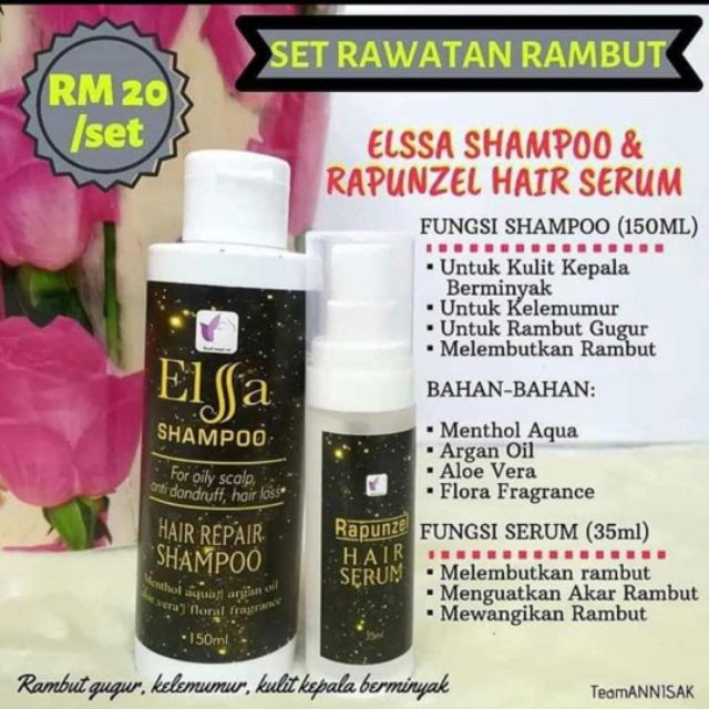 Syampu Elsa Dan Serum Rawat Rambut Gugur Kelemumur Kulit Kepala Berminyak Shopee Malaysia