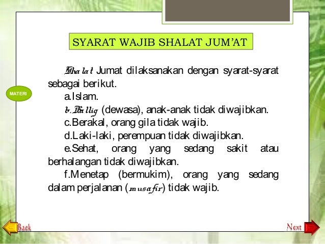 Shalat Jumat Yang Diwajibkan Tidak Diwajibkan Syarat Sah Rukun Khutbah Ppt Download