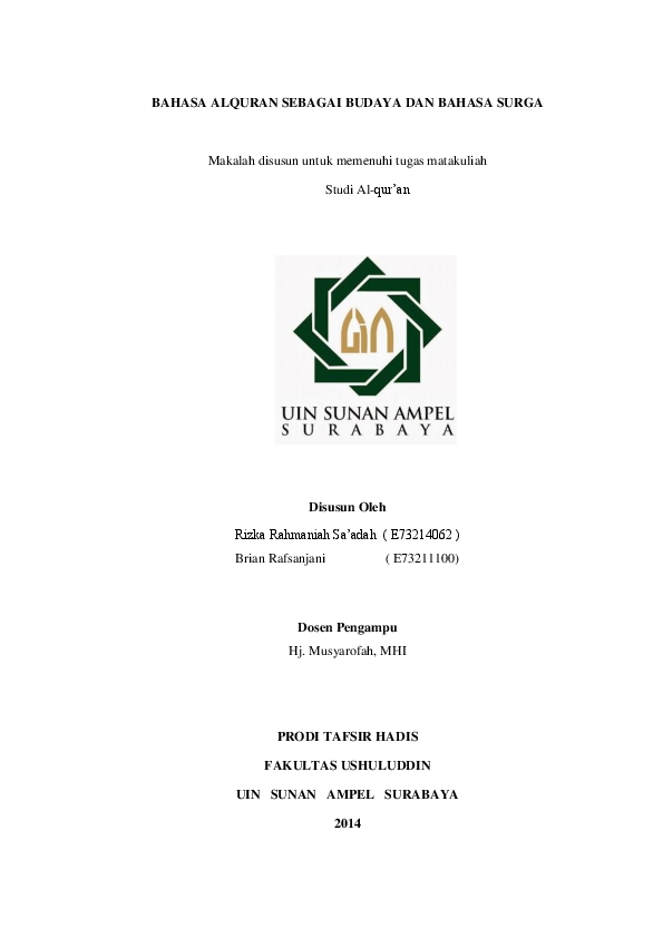 Doc Pandangan Alquran Sebagai Budaya Dan Bahasa Syurga Rizka Rahmaniah Academia Edu