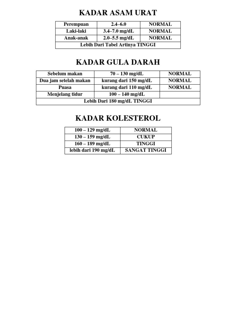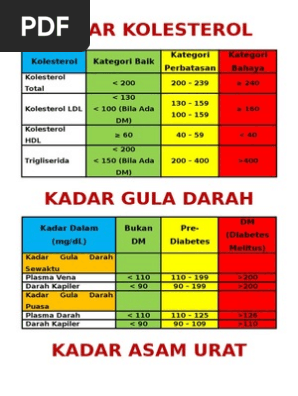Kadar Kolesterol Gula Darah Dan Asam Urat