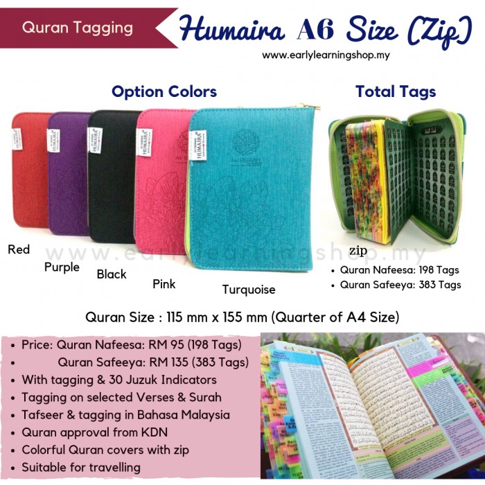 Al Quran Tagging Humaira A6 Size With Zip Ready Stock With Free Tasbih Shopee Malaysia