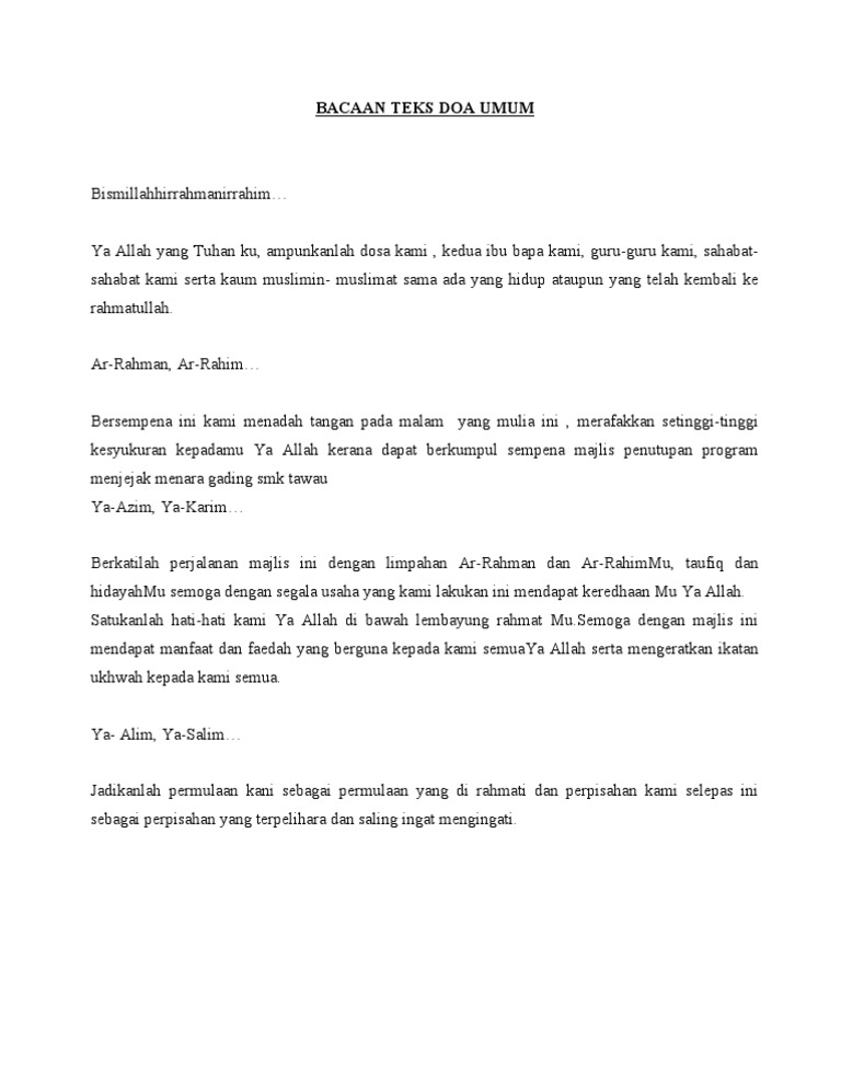 Teks Doa Majlis Persaraan Guru Docx