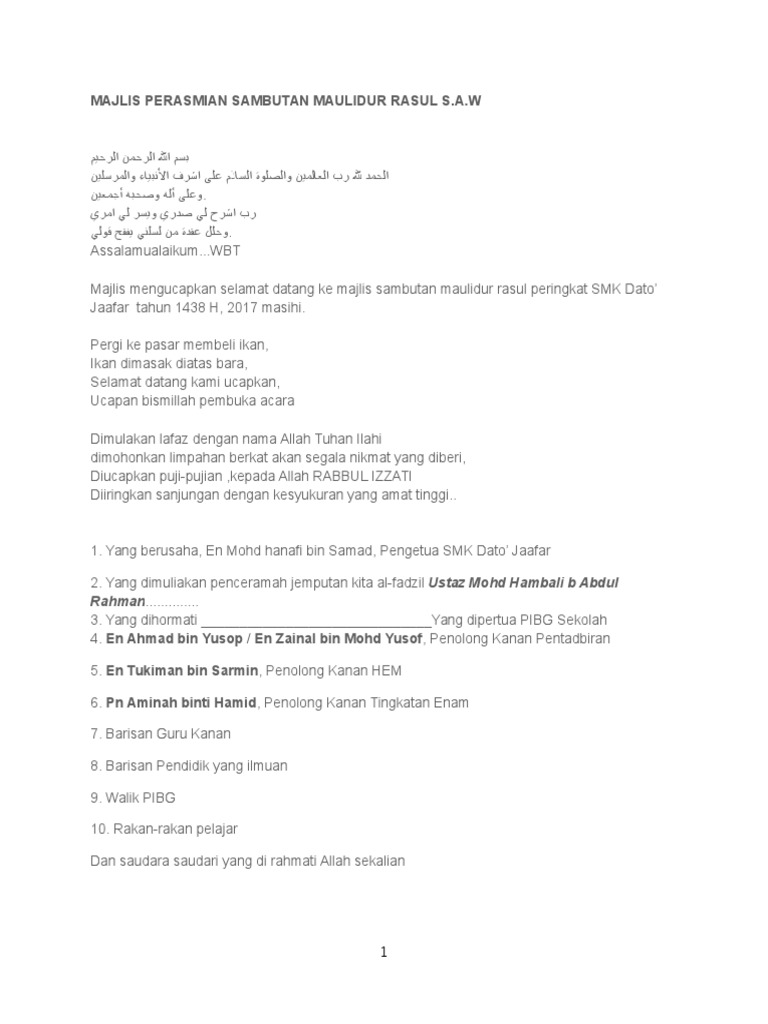 Teks Pengacara Majlis Sambutan Maulidur Rasul Peringkat Sk Balik Pulau Docx