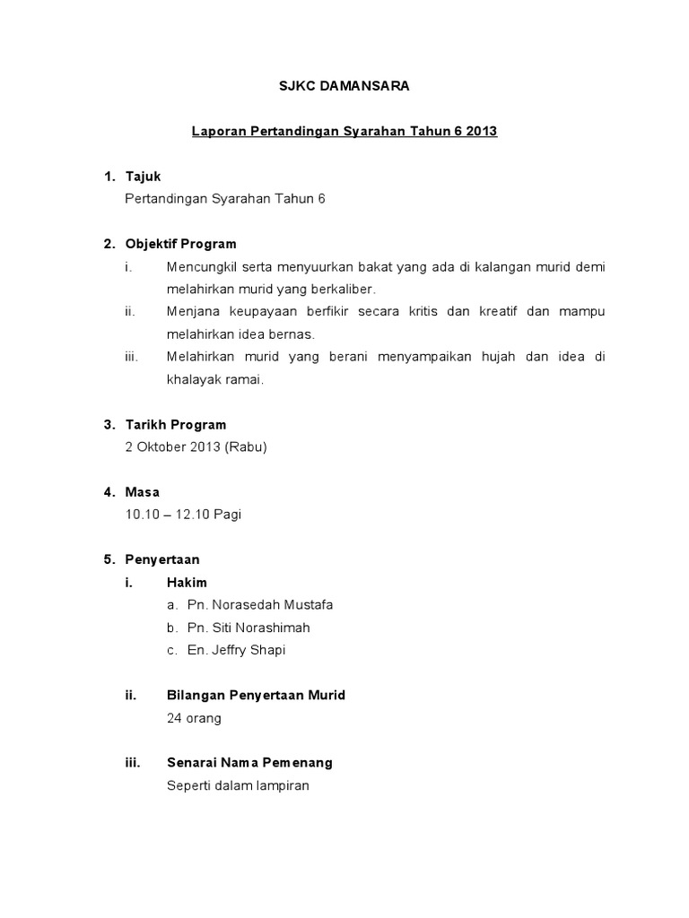 Laporan Pertandingan Syarahan Tahun 6 2013 Doc