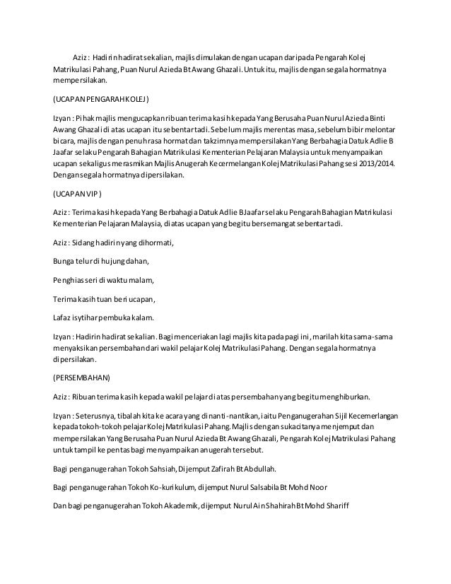 Doc Contoh Teks Pengacara Prgram Mahasiswa Cakna Komuniti Docx Solehulhafiz Suhaimi Academia Edu