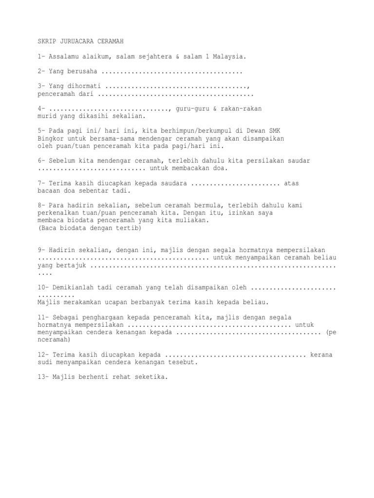 Teks Juruacara Ceramah