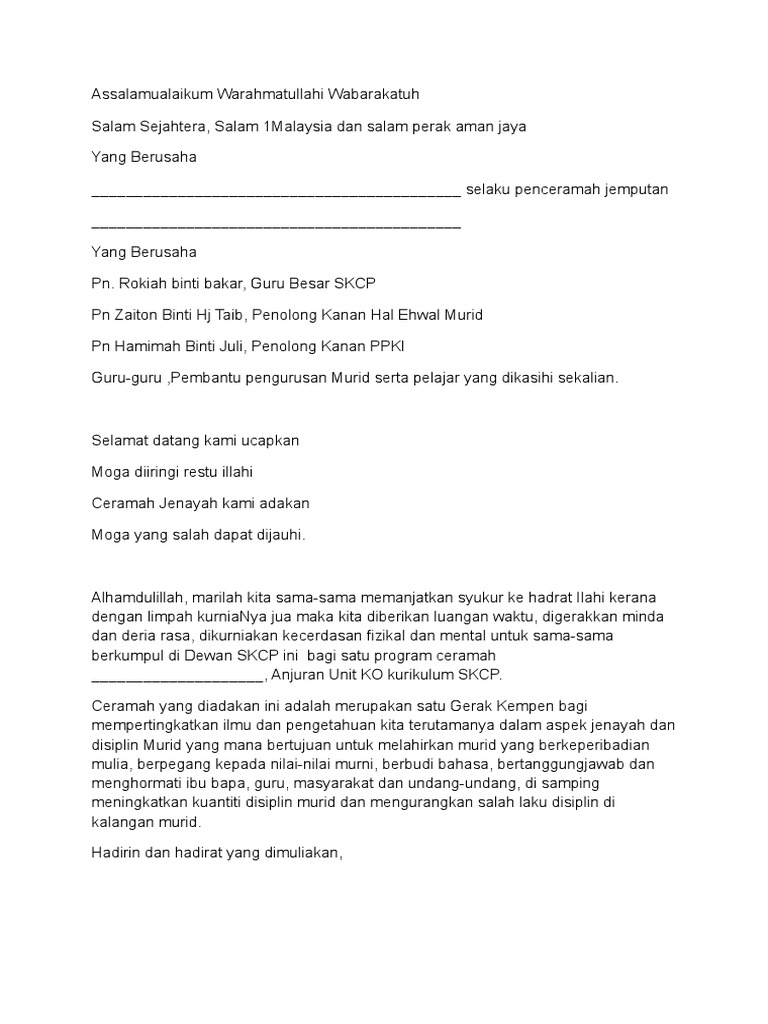 Contoh Format Ceramah Rasmi W