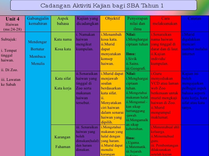 Cadangan Aktiviti Kajian Bagi Sba Spn21 Tahun 1