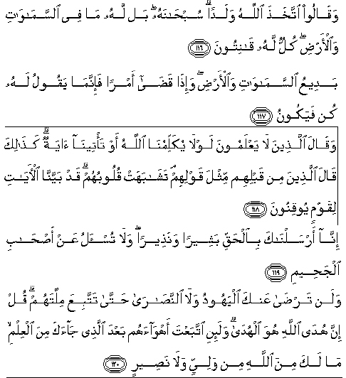 Surat Al Baqarah Ayat 116 117 118 119 Dan 120 Lengkap Dengan Arti Terjemahannya Alquran Surat Ayat