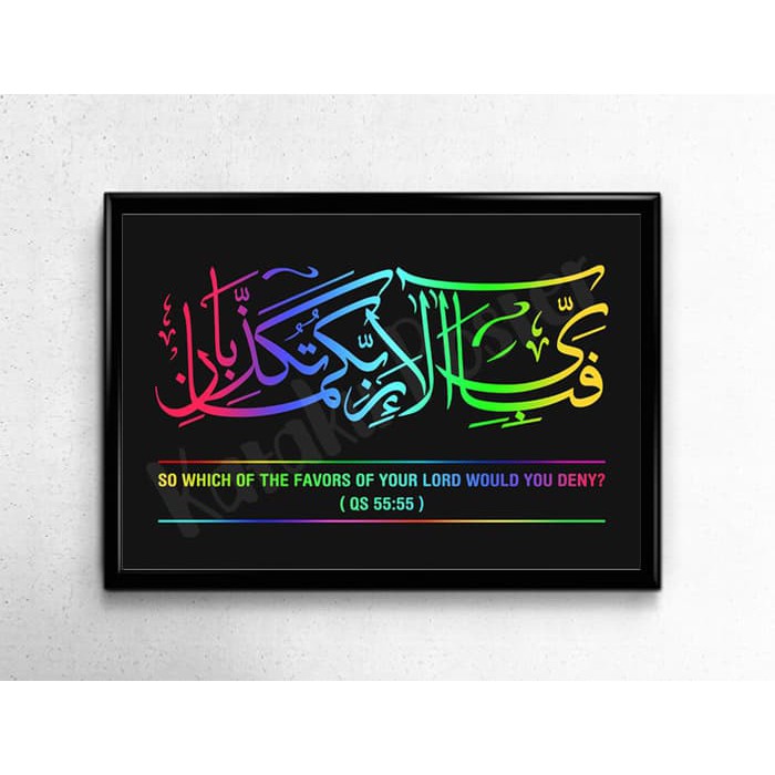 Poster Kaligrafi Surat Ar Rahman Ayat 55 Terjemahan Bahasa Inggris Shopee Indonesia
