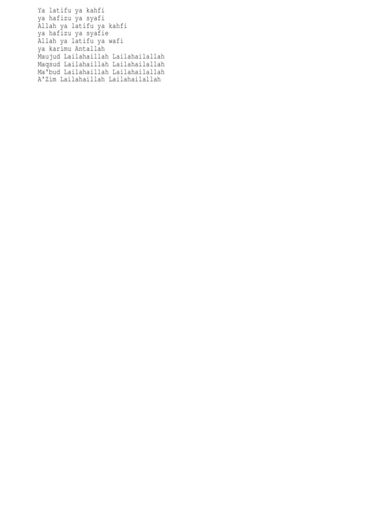Teks Qasidah Yaa Latif Falam Ya Dzal