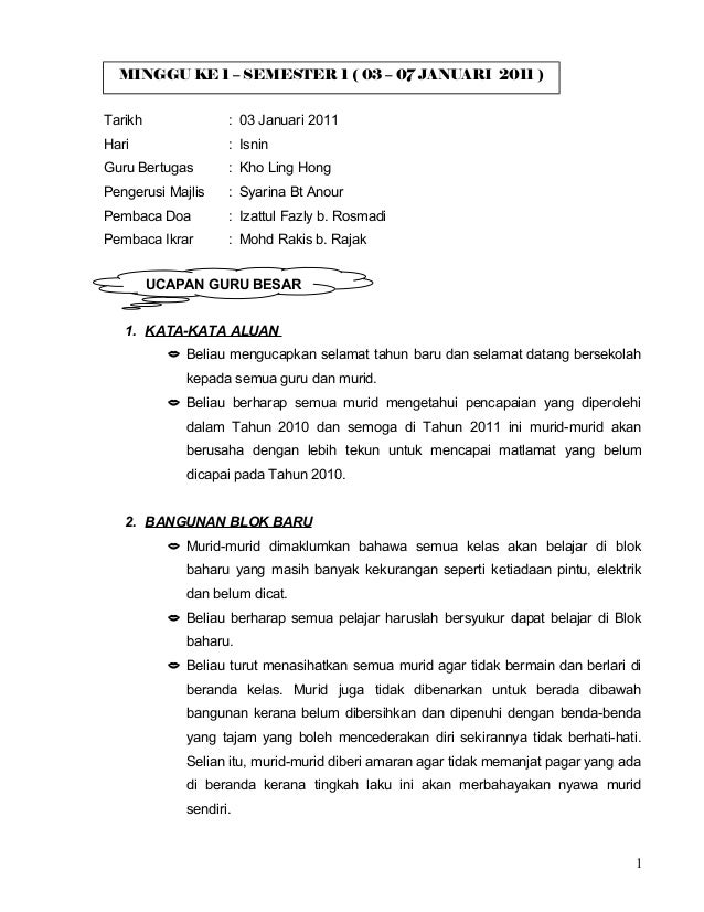 Ucapan Guru Bertugas Mingguan Kali Ke 1 2014