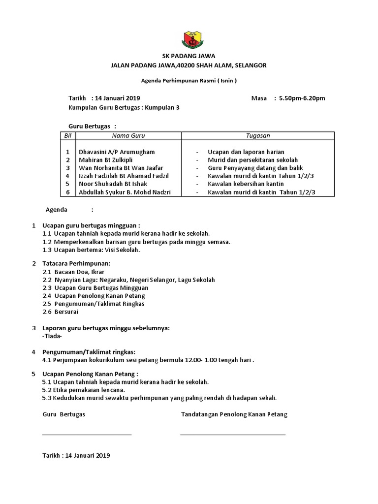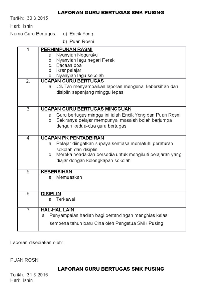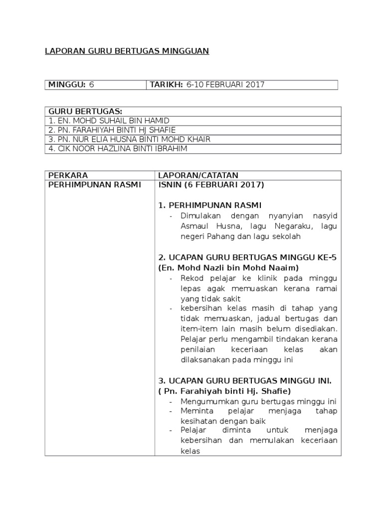 Laporan Guru Bertugas Minggu 2 Isnin Hingga Sabtu Pages 1 25 Text Version Anyflip