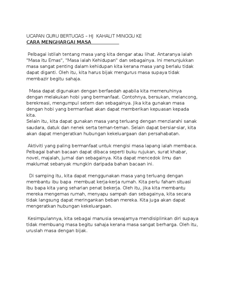 Teks Ucapan Guru Bertugas Perhimpunan