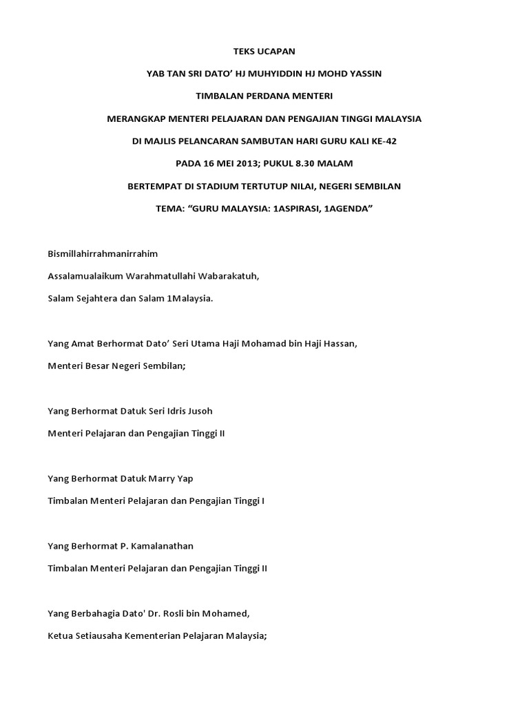 Doc Teks Ucapan Pengacara Majlis Sambutan Hari Guru Dan Pekerja Sk Bangsar 25 Mei 2012 Raj Vincent Academia Edu