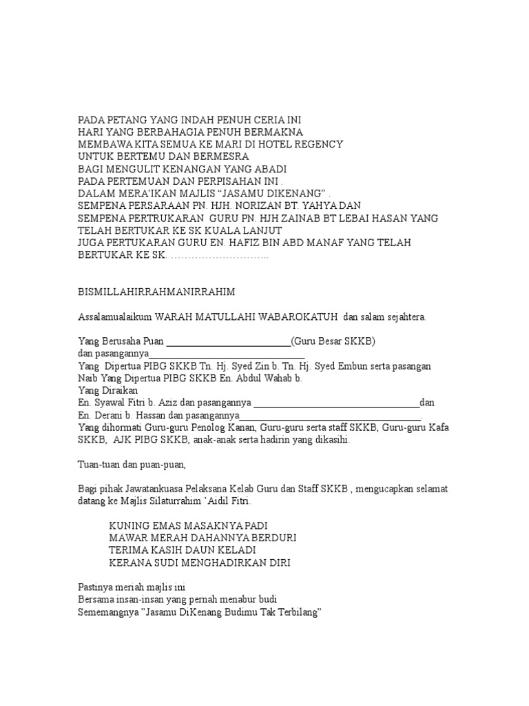 Doc Teks Pengacara Majlis Majlis Perpisahan Jan 2018 Majidah Najihah Academia Edu