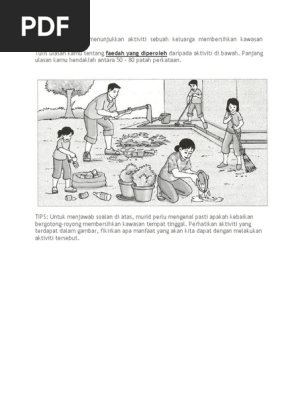 Gambar Di Bawah Menunjukkan Aktiviti Sebuah Keluarga Membersihkan Kawasan Kediaman Mereka