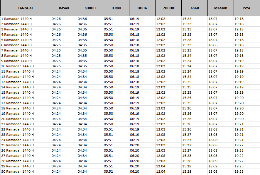 Jadwal Imsakiyah Puasa Ramadhan 2020 Dan Waktu Sholat Wilayah Indonesia