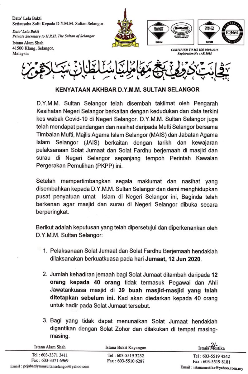 Bernama Radio On Twitter Masjid Surau Di Selangor Boleh Laksana Solat Jumaat Berjemaah Lima Waktu Berkuat Kuasa Esok Setiausaha Sulit Sultan Selangor Https T Co Vfkqbbaubl