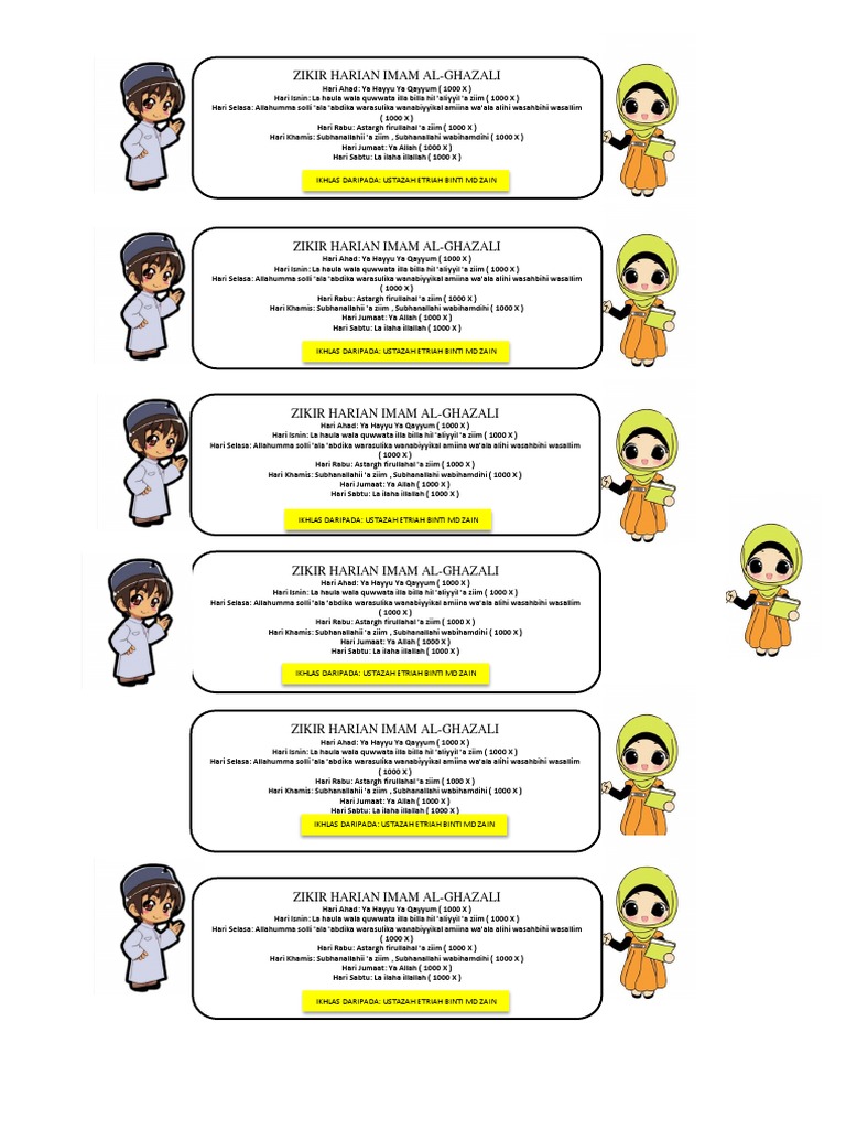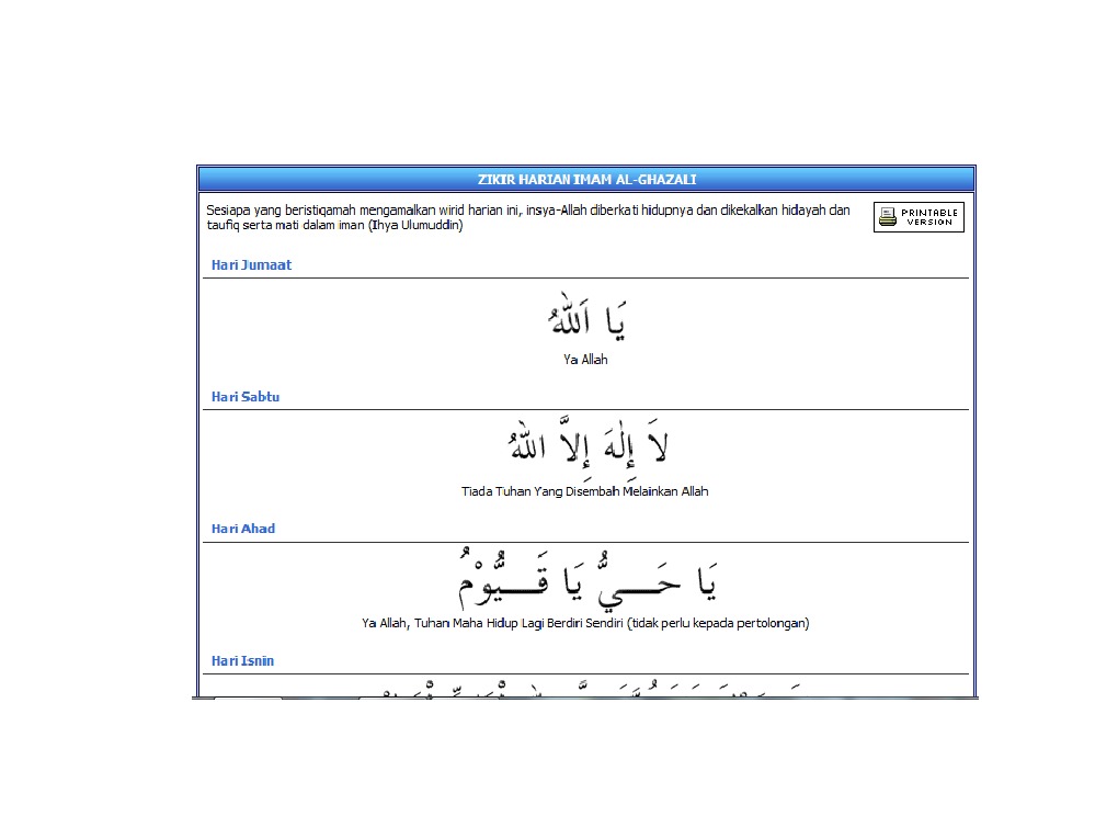 Zikir Harian Isnin Hingga Ahad Amalan Imam Al Ghazali Aliff Co Al Ghazali Life
